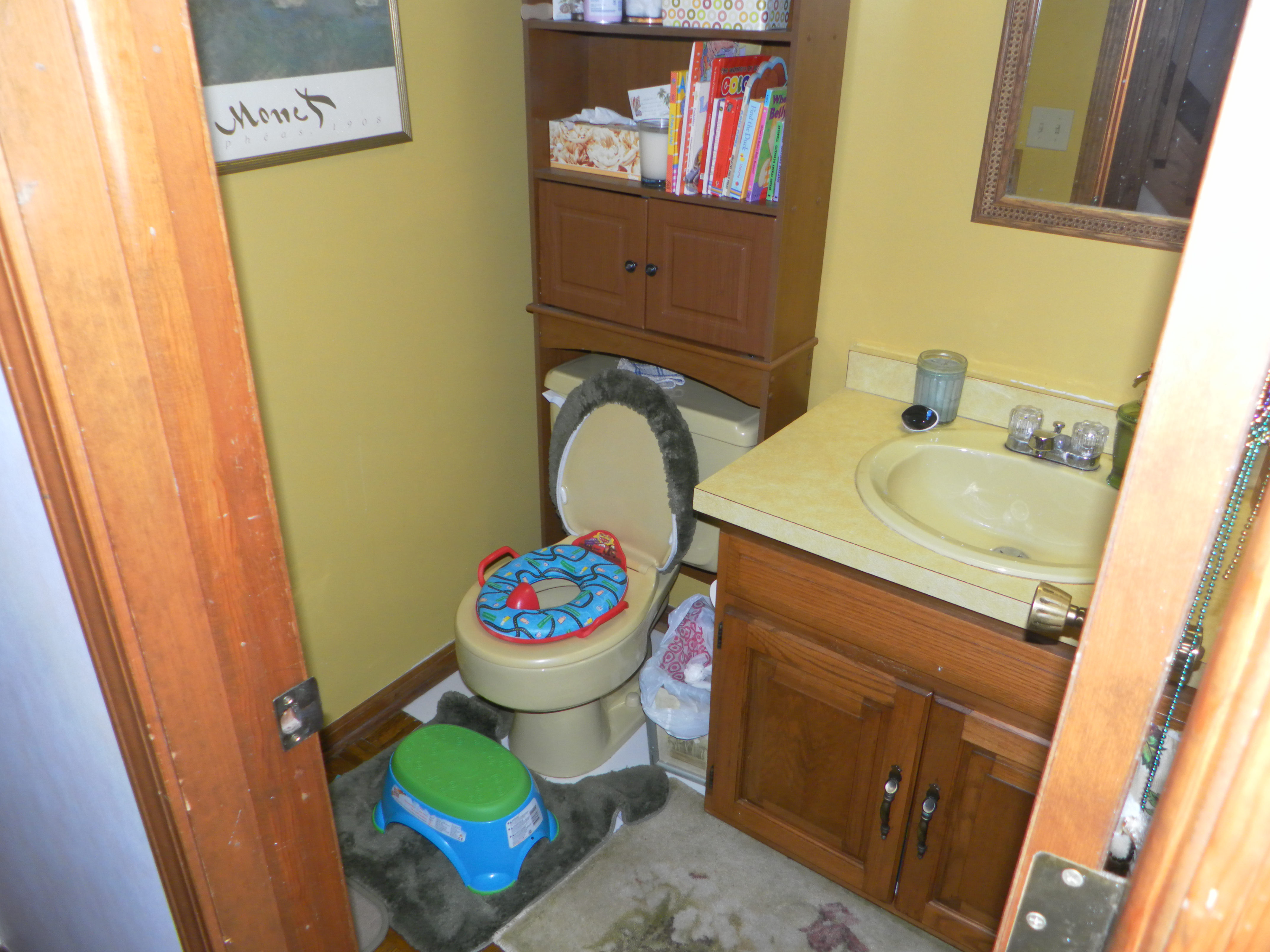 Footstool, toddler seat, books to read – of all the amenities, only the toddler seat is indispensable. Alas . . .