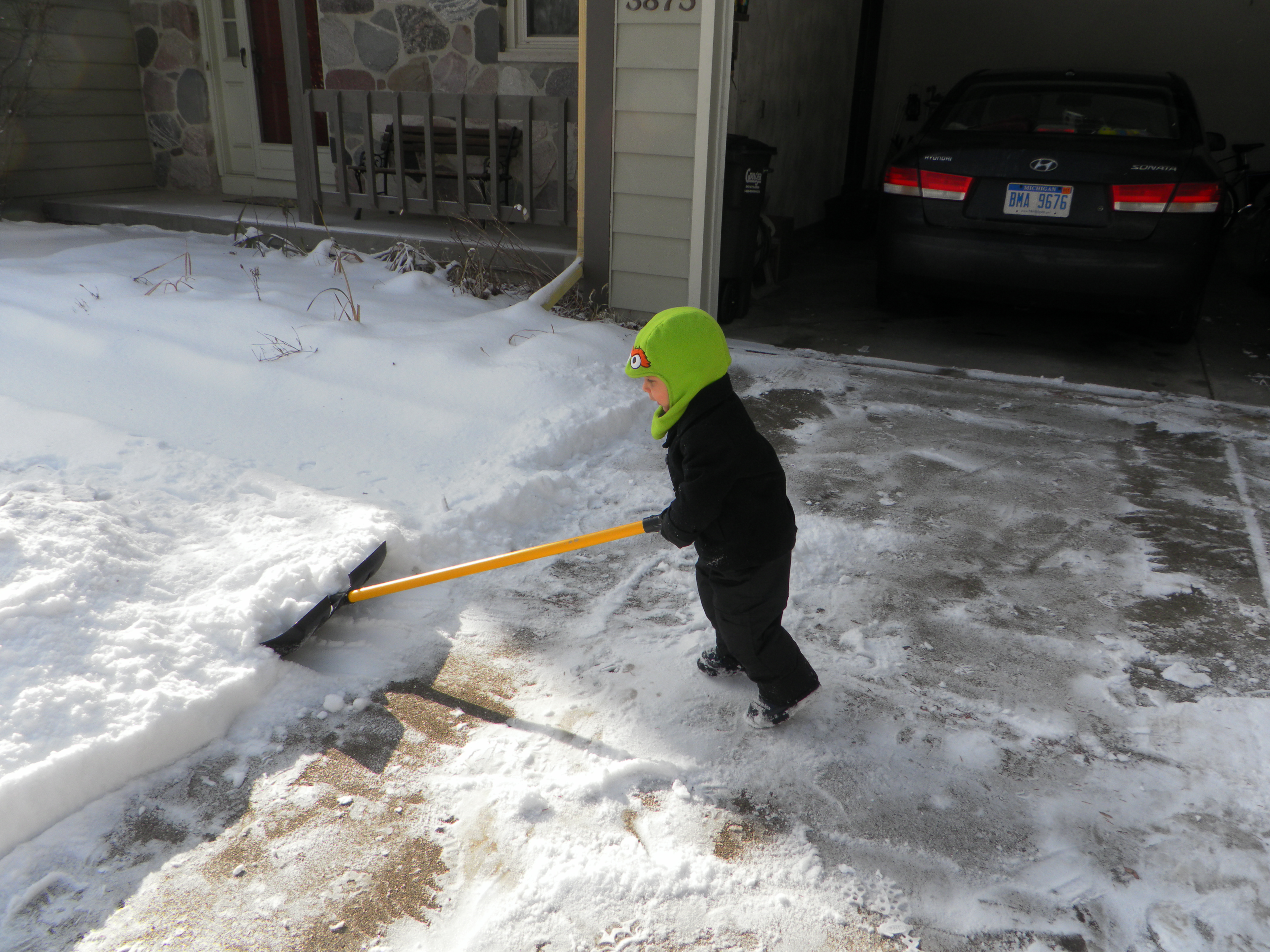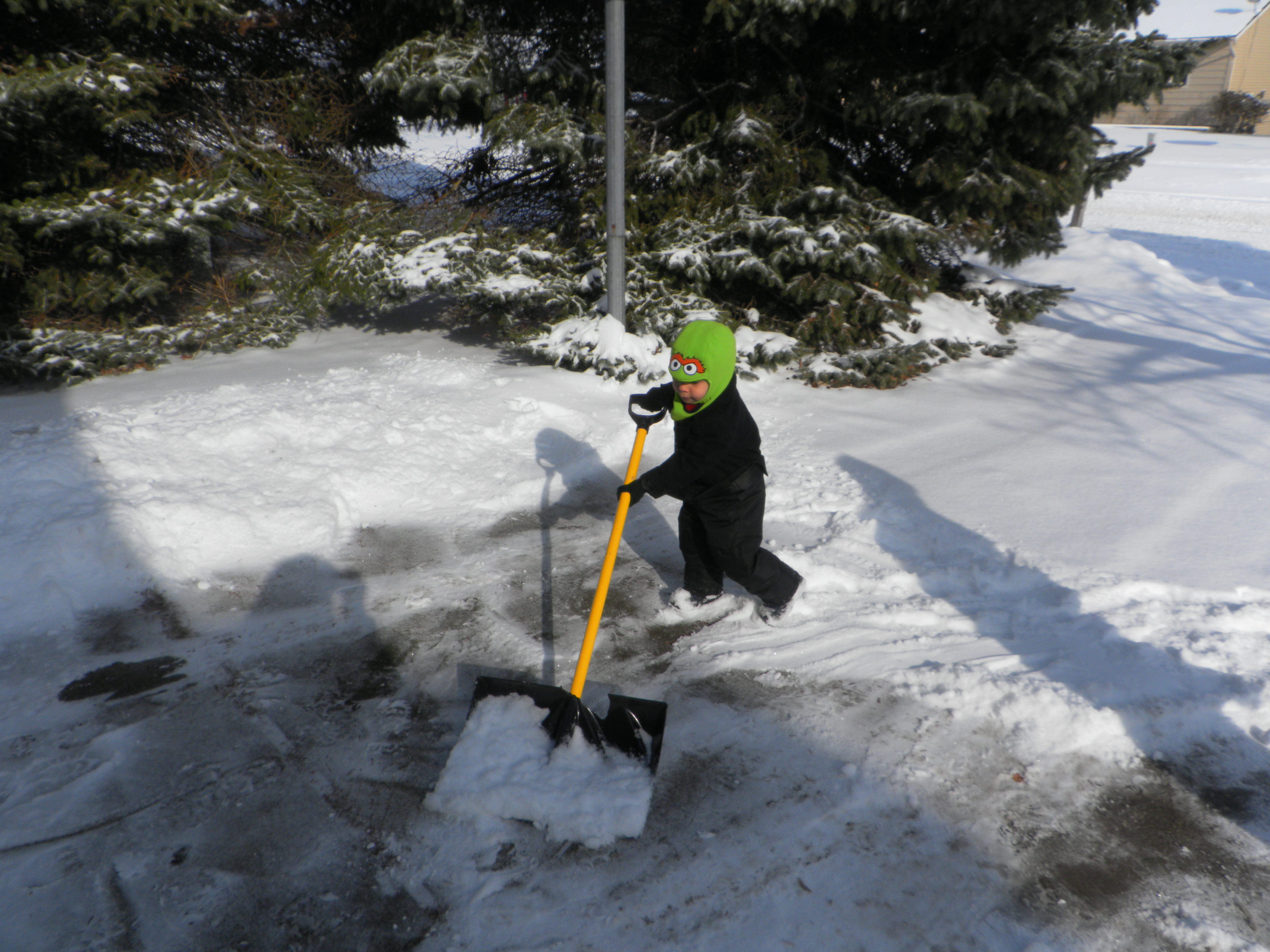 “We’ve got a lot of lawn to shovel off. Good thing we’ve got a clear space in the driveway where we can pile up the snow.”