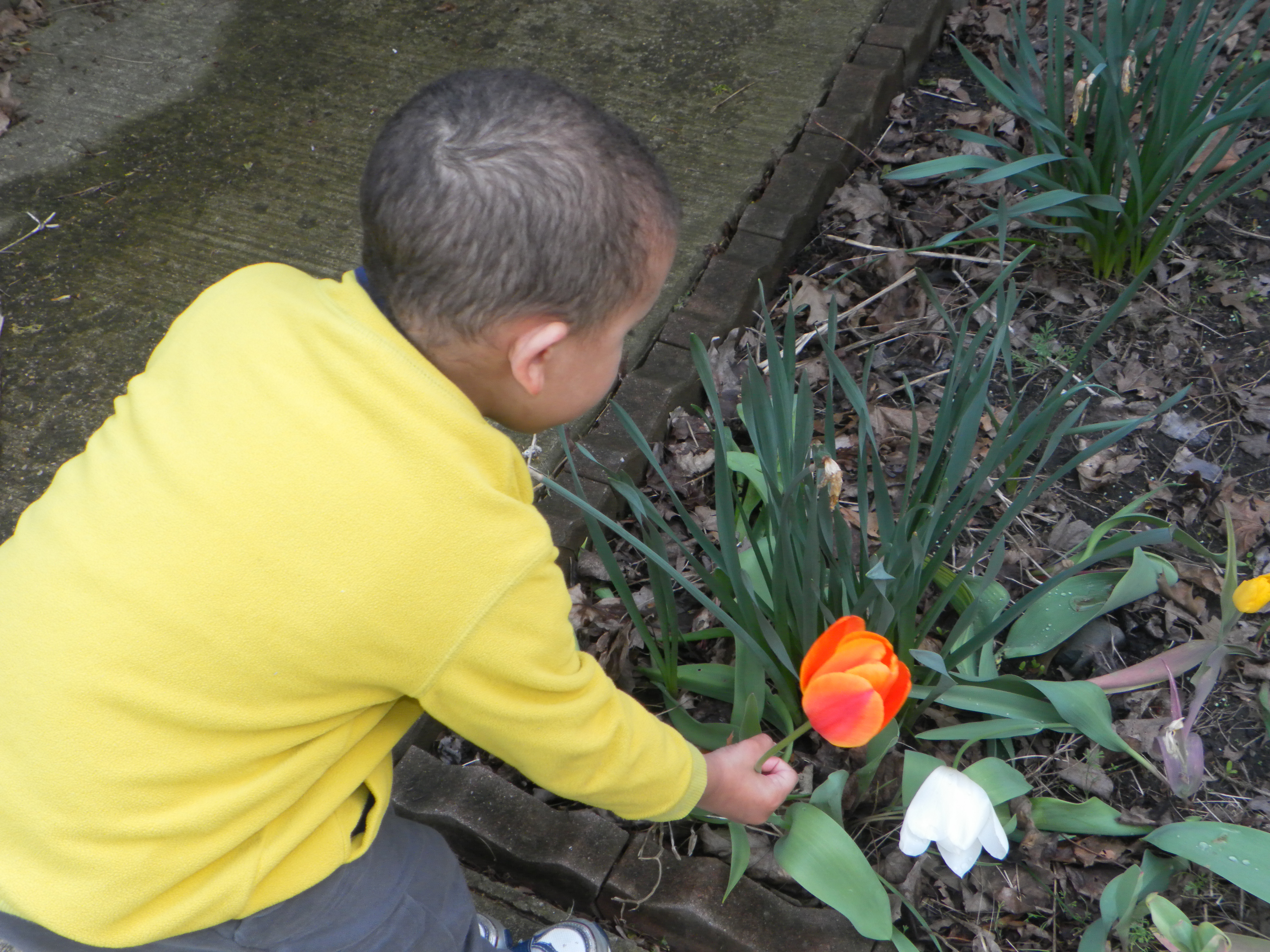 In summer, he helps me weed the flowerbeds. He picks those especially troublesome weeds with all the orange, yellow, and red soft parts at the top. These weeds attract bees, and bees can sting people. I know he wonders how someone who has been gardening as long as I have could miss the most obvious weeds in the whole garden. Silly Daddy wastes his time on the little green sprouts in between when it is the big, colorful weeds that are using up all the space on top.