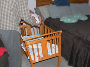 There are two places where our babies have preferred to fall asleep: in the car seat and in our arms. There is one general category of places where they preferred not to sleep; that category includes any cradle, crib, or other bed specifically designated as the baby’s sleeping area.