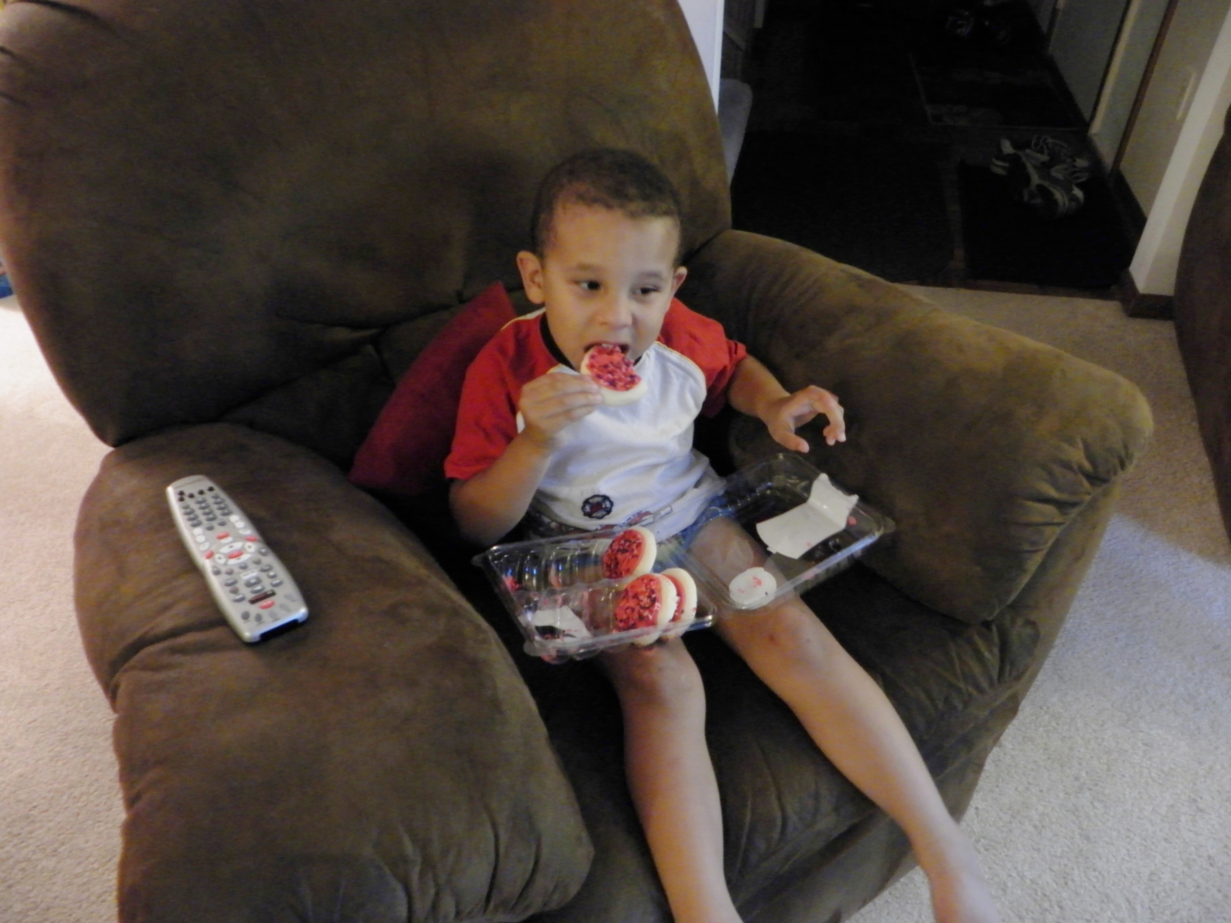 I don’t know how he got hold of a whole package of cookies. All I can figure is that he must have said pretty please.