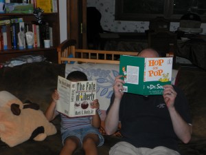I should be able to teach my own flesh and blood to read. To begin with, I can read myself, which is half the battle. I should be able to find the time, patience, and discipline to get him reading. It turns out, those things comprise the much larger half of the battle.