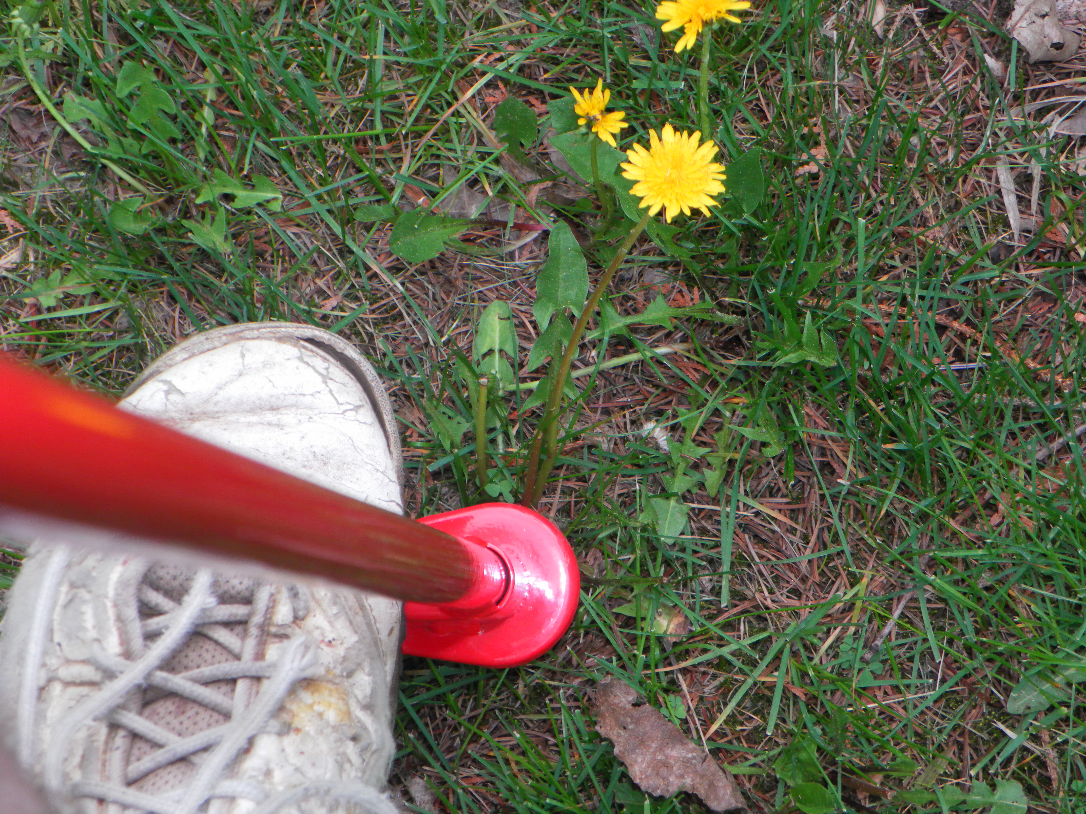 My wife, for all her strengths, is not the most proficient Dandelion hunter. Dandelion stems tend to lean off to the side (damn their milky souls), so if you aim for the bright, decoying flower, you will surely miss the root. My wife has made a regular hobby of missing the root.