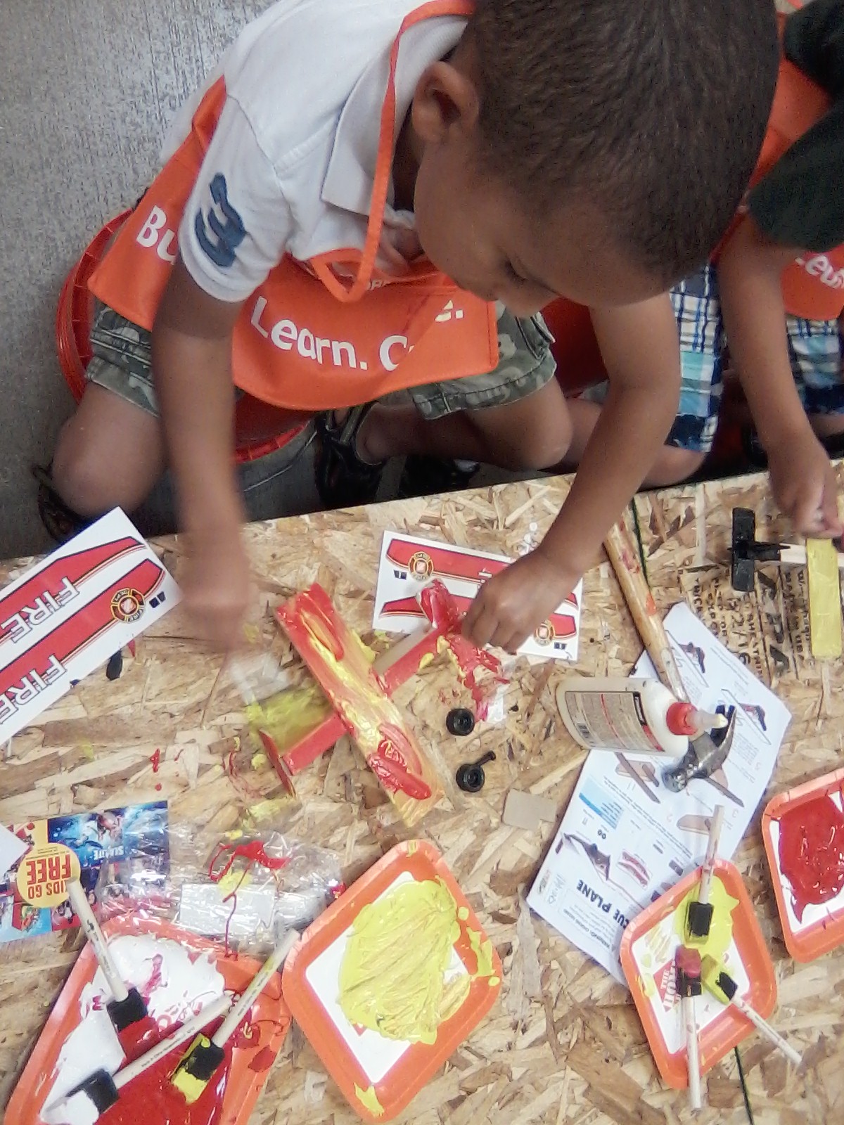 It started at the Home Depot kids workshop, building a kit plane. They give the kids aprons and access to lots of paint. The person next to a kid with a paint brush needs the apron more, but parents are left to fend off wayward strokes on their own.