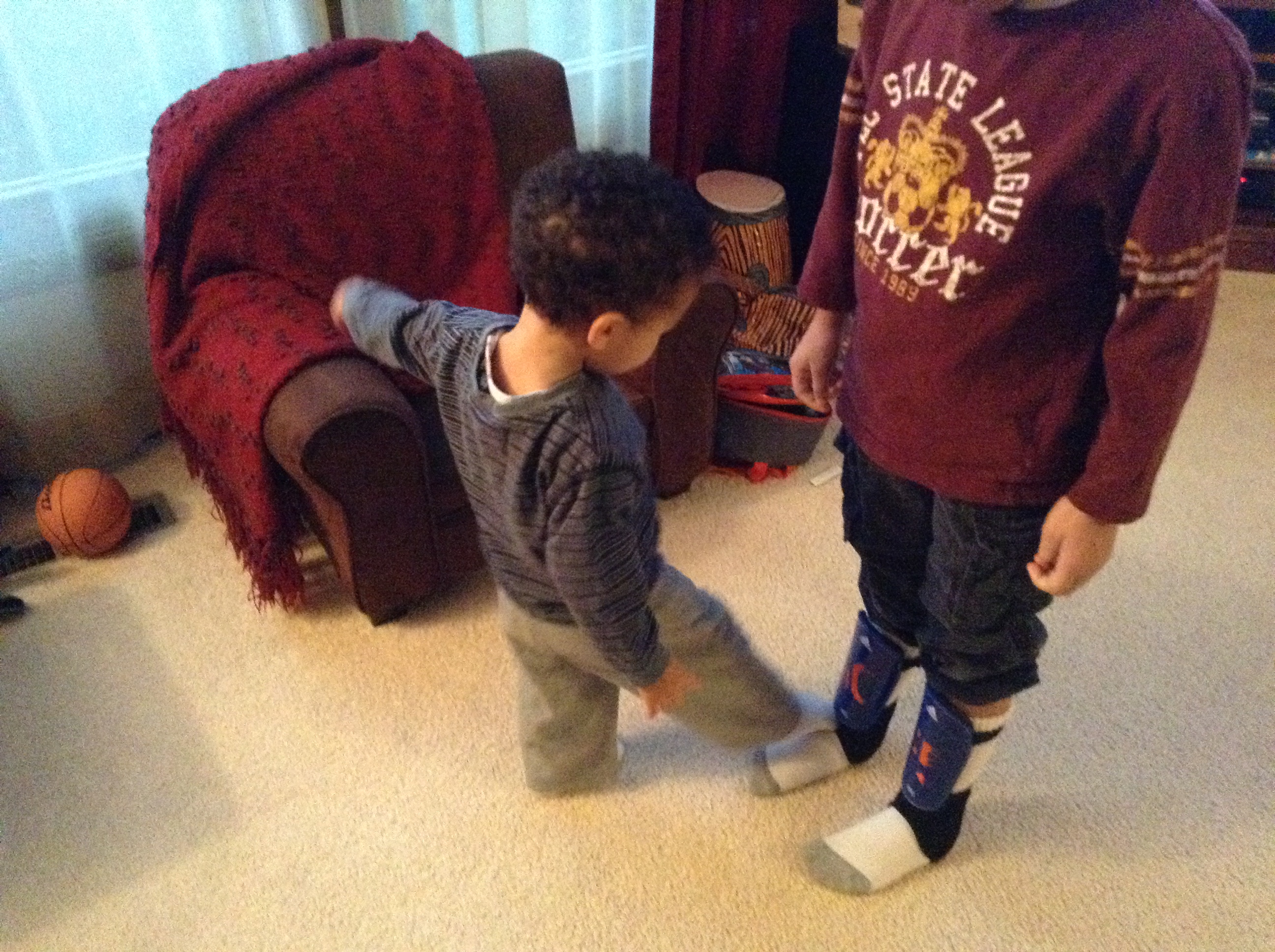 And this is why we put them on. Forget soccer, Daddy could use a pair of these for walking around the house.