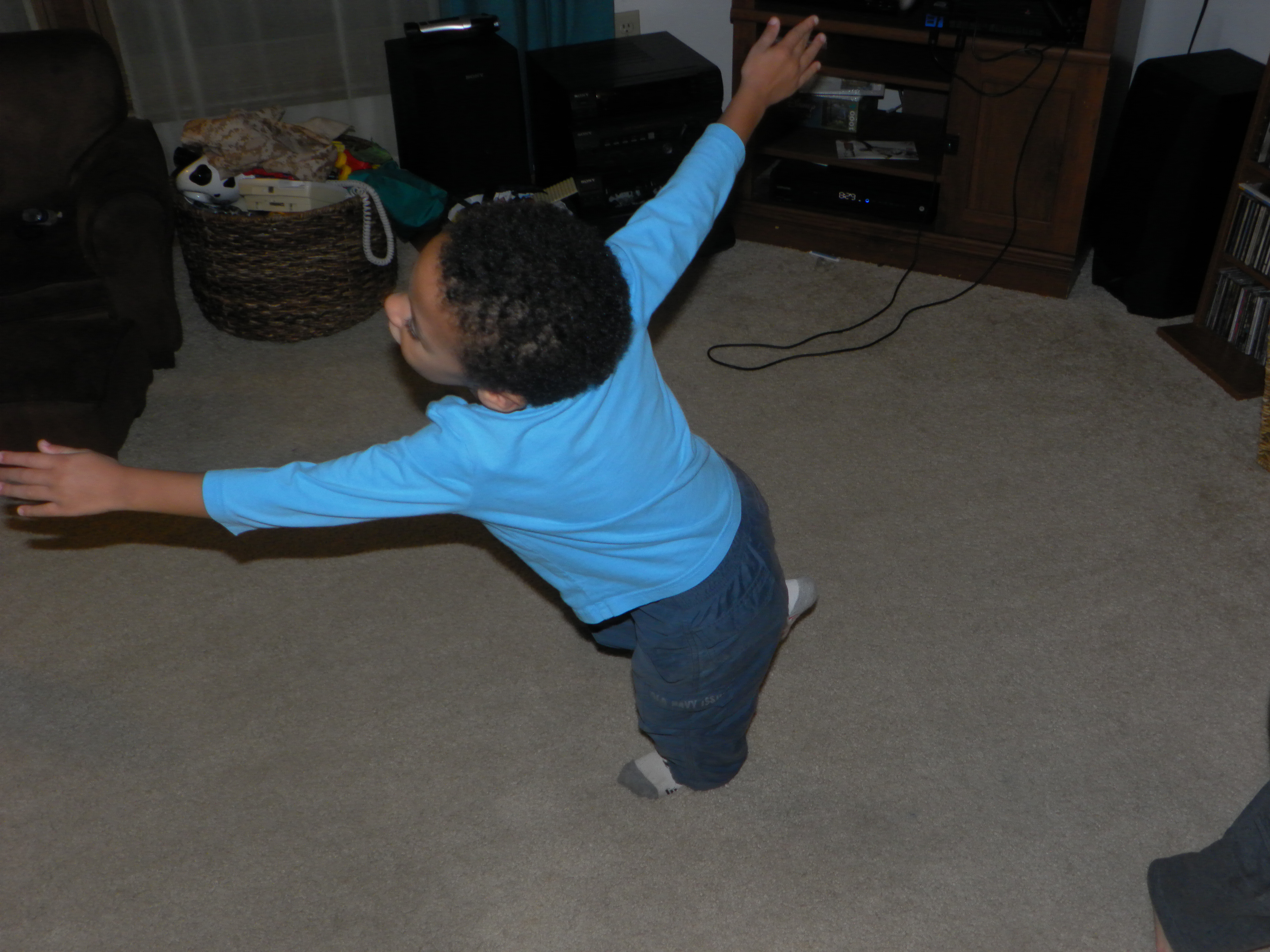 Buster does yoga in preschool. The other night he showed us some yoga positions he’s learned. He demonstrated the Tree and the Airplane. The airplane looked more like a lame duck to me, but my yoga eye isn’t as advanced as his. Maybe I’m taking it all too literally. I have little doubt he’ll be teaching me to see the metaphor and appreciate the symbolism in the form by the spring semester.