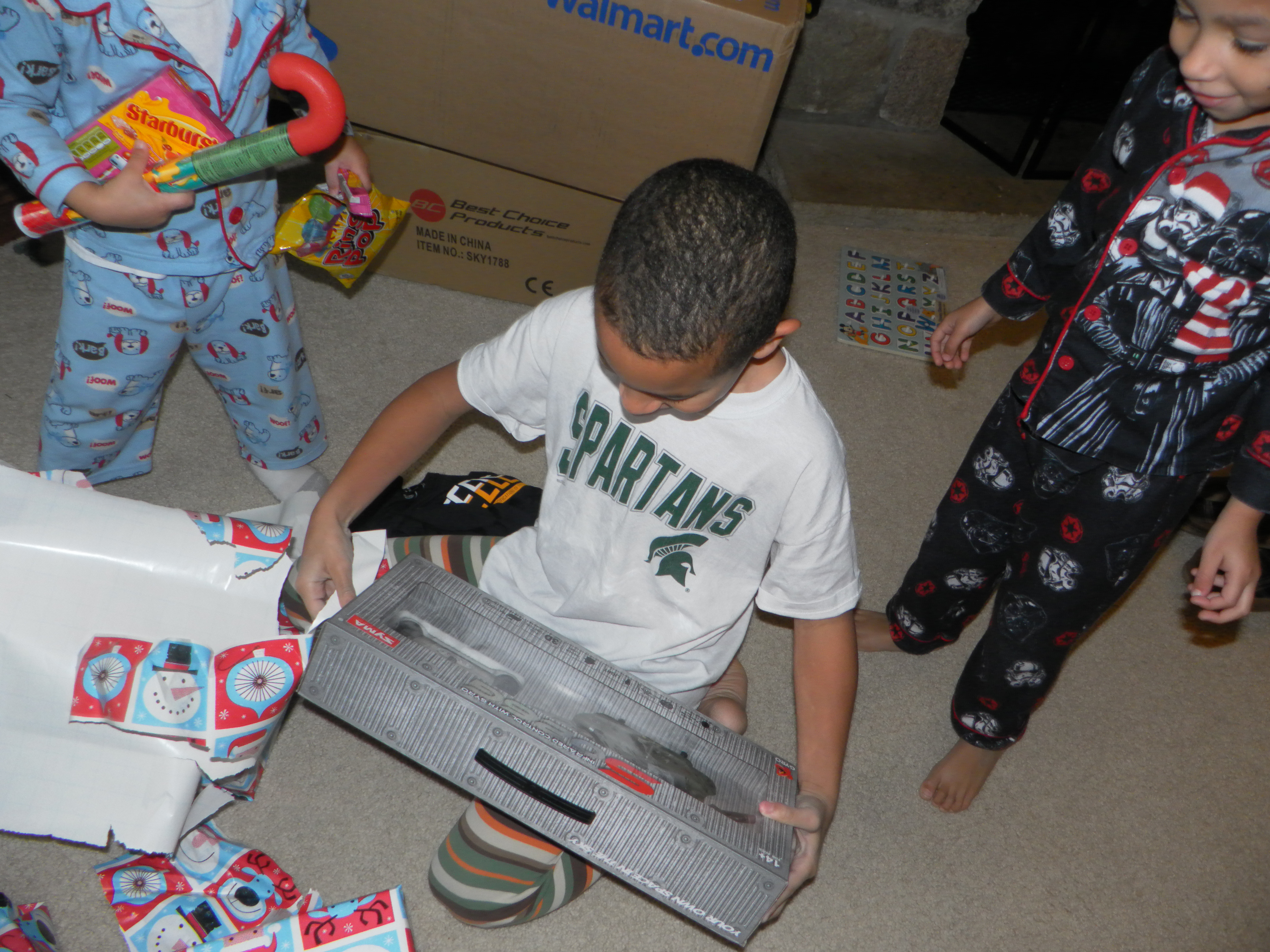 The best thing to do on Christmas is open up all the boxes with your new toys in them and dump everything out on the floor.  Toys come with a lot of pieces nowadays and it’s important to get all the pieces together in one big pile. That way, when you and your brothers start hounding Daddy to assemble all your play sets, he’ll have all the pieces for any of them he needs in one central location.