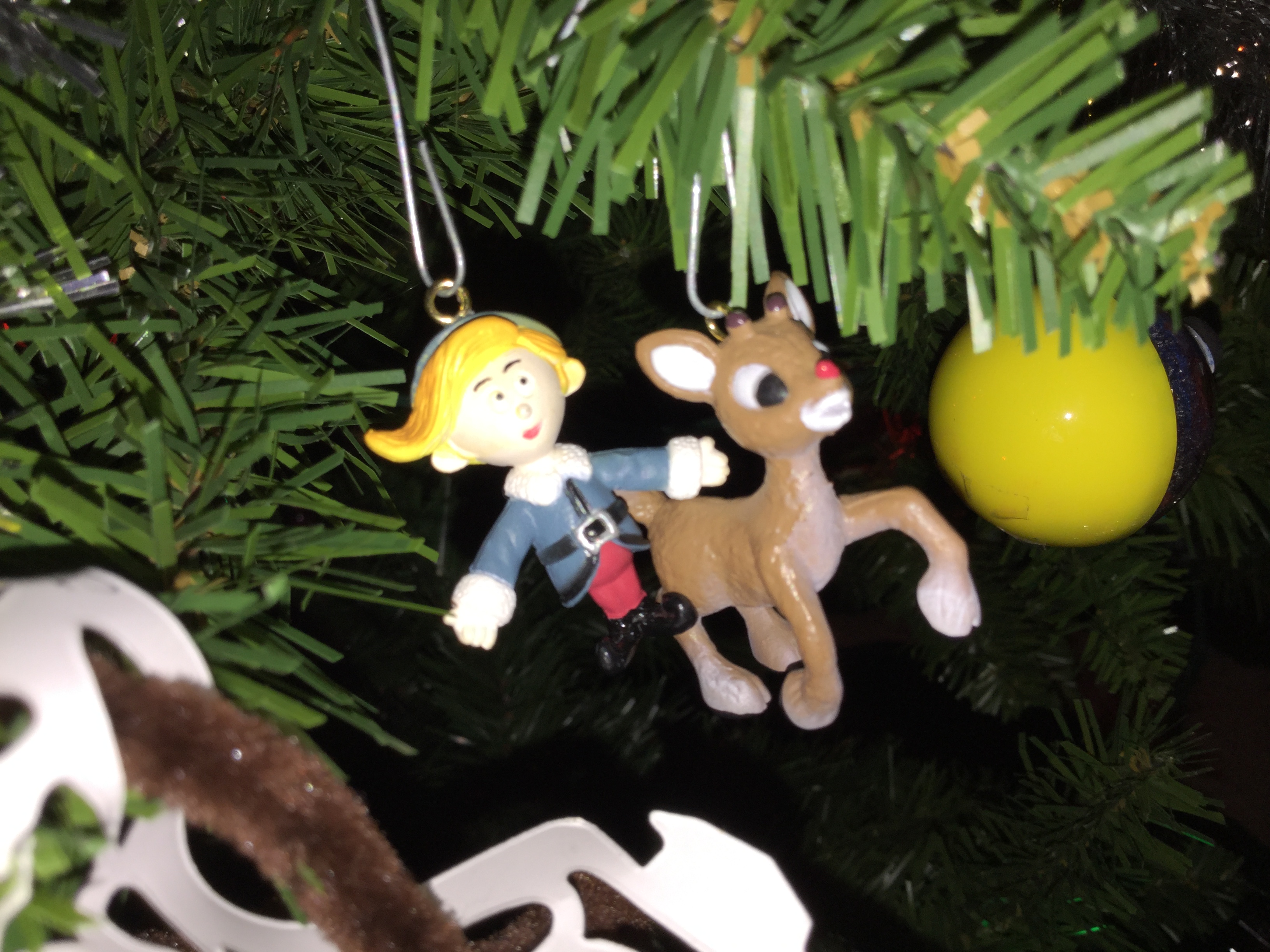 Later I noticed Rudolph, Clarice, Yukon Cornelius, Hermey, and the Abominable Snowman hung in a group. So were Homer, Bart, Marge and Lisa. Both television casts were on display near the bottom of the tree, leaving no doubt as to who hung family and friends together.