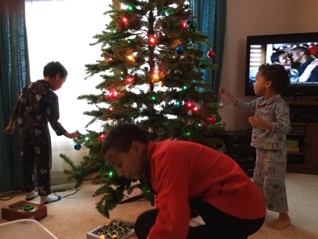 Now, if you really just wanted to see a picture of us putting up the tree, I’ve got you covered too.