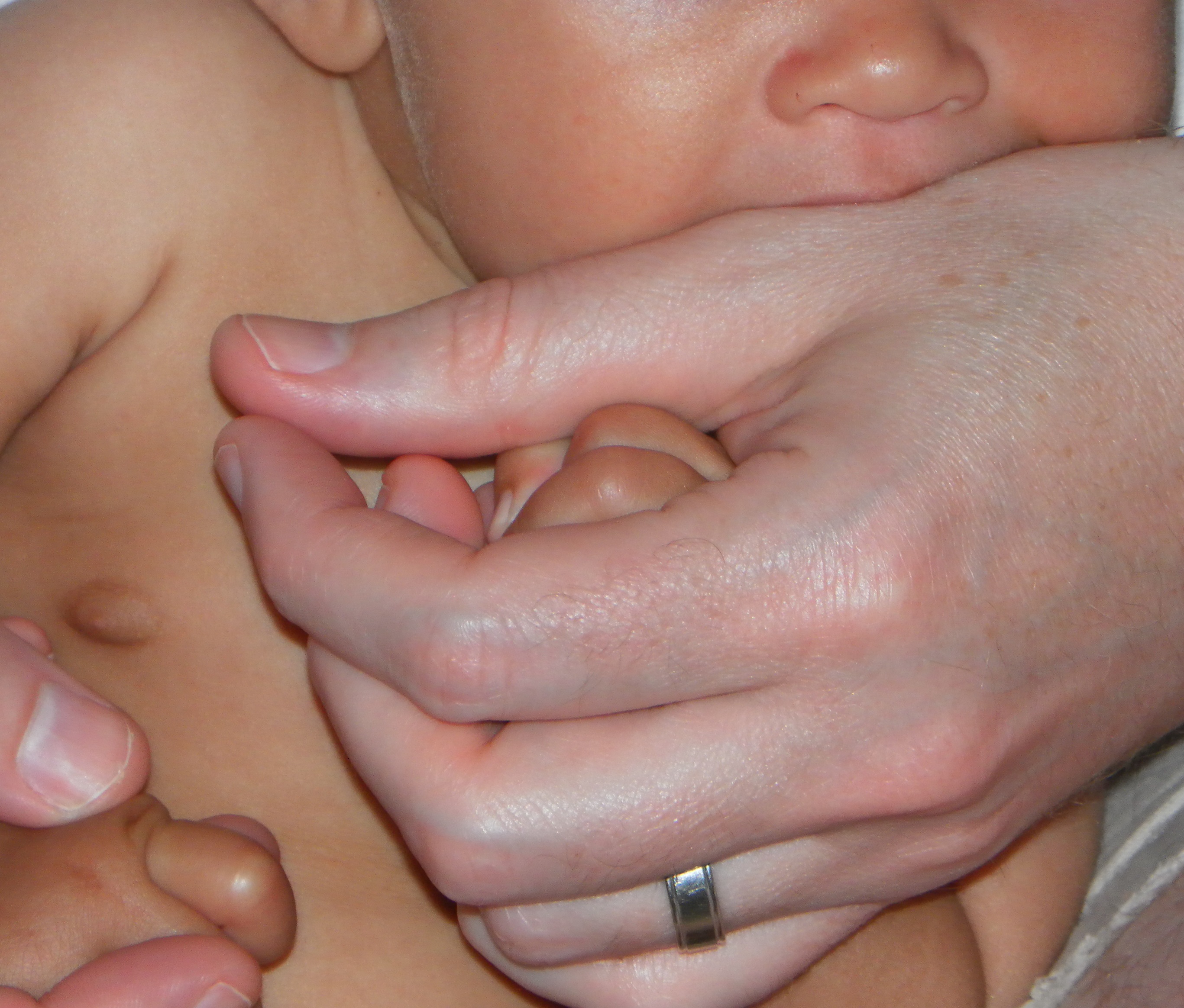 This is a milestone that all breastfed babies probably achieve. It’s odd that the doctor never asks about it because it is a good measure of ingenuity and coordination. Our baby met this milestone some time ago, but it seems like he keeps getting more nimble and insistent.