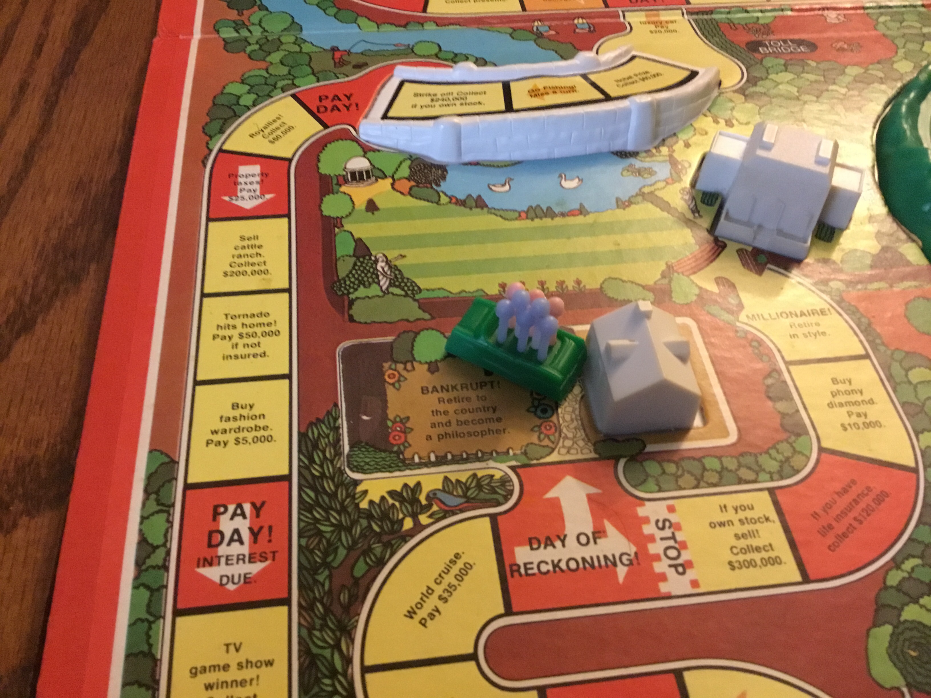 This is the first time I’ve played Life since boyhood, and now I notice different things about the game. For example, even for 1979, the salaries were outdated: Doctor’s salary – $20,000.