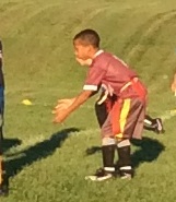 Football requires as much determined movement as soccer. This is unfortunate, since the boy uses up all his aggressive play on his little brothers. When it comes to sports with non-related children, he is a passivist.