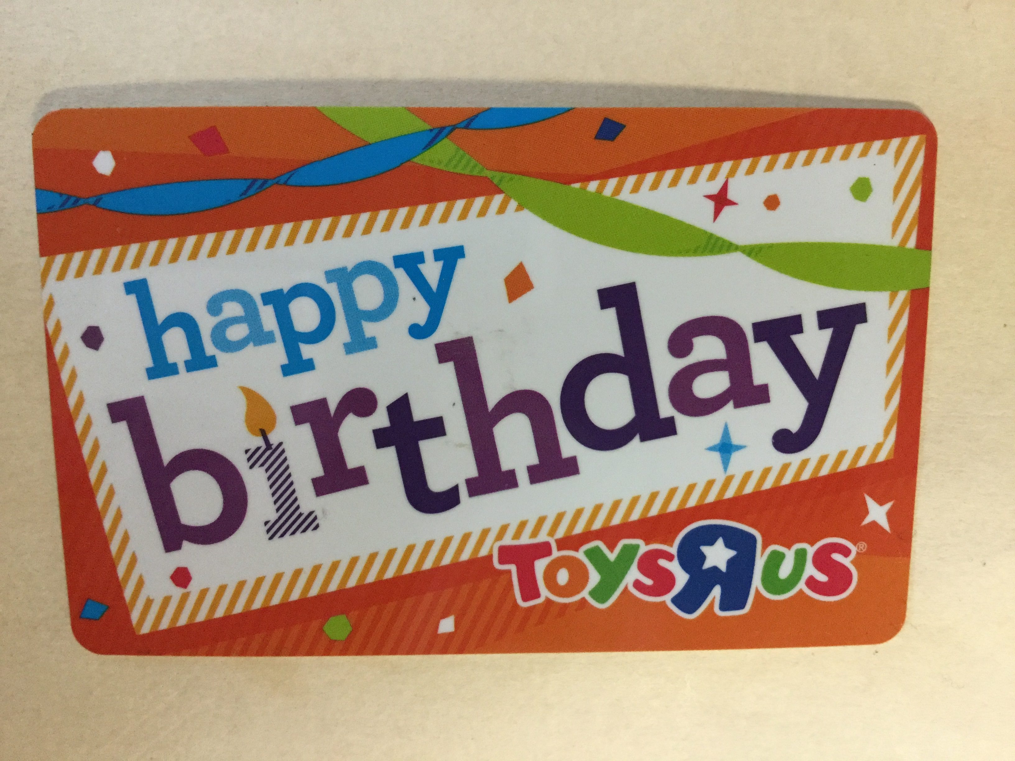 He produced a bright, festive, probably worthless, Toys R Us gift card with the unfulfillable words, “happy birthday” emblazoned across it. He must have got it at his party last summer.