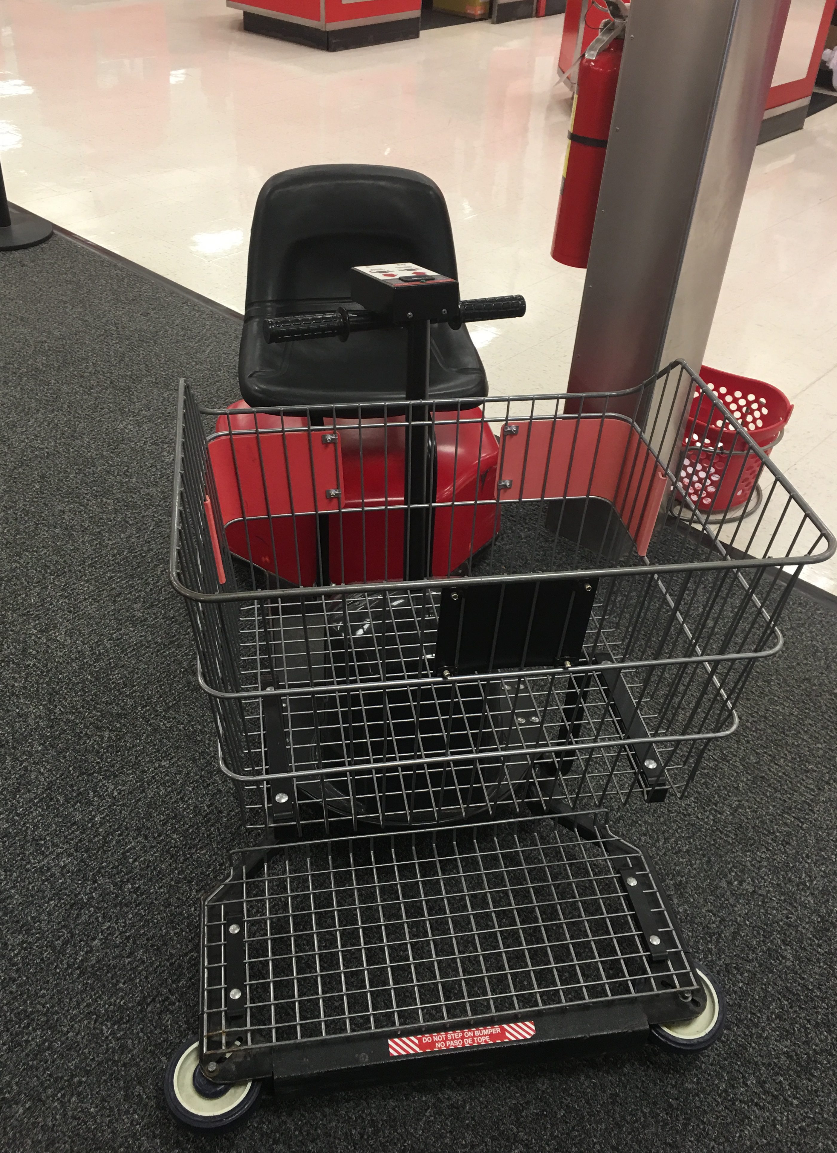 The self-conscious grocery rider learns these carts make the beeping noise of a construction vehicle when backing. In a Saturday superstore, there are an alarming number of obstructions that force reversing.